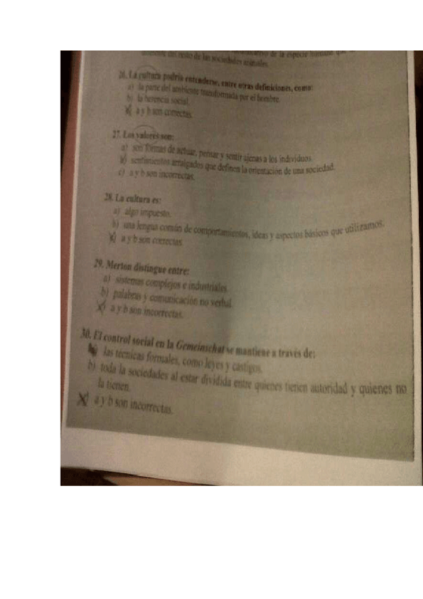 Examen primer parcial de la profesora Rosario de sociología turno de mañana los últimos dos años ha puesto el mismo faltan unas 4 preguntas creo, esta algo borroso pero se entiende.