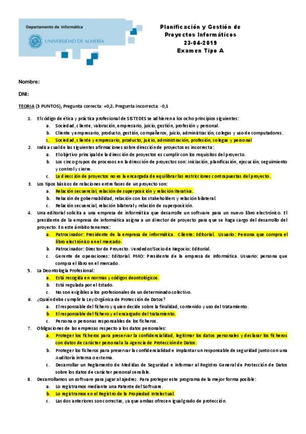 He publicado nuevos examenes de 2º Planificación y Gestión de Proyectos Informáticos: EXAMEN-04-06-2018-TIPO-A-corregido.pdf