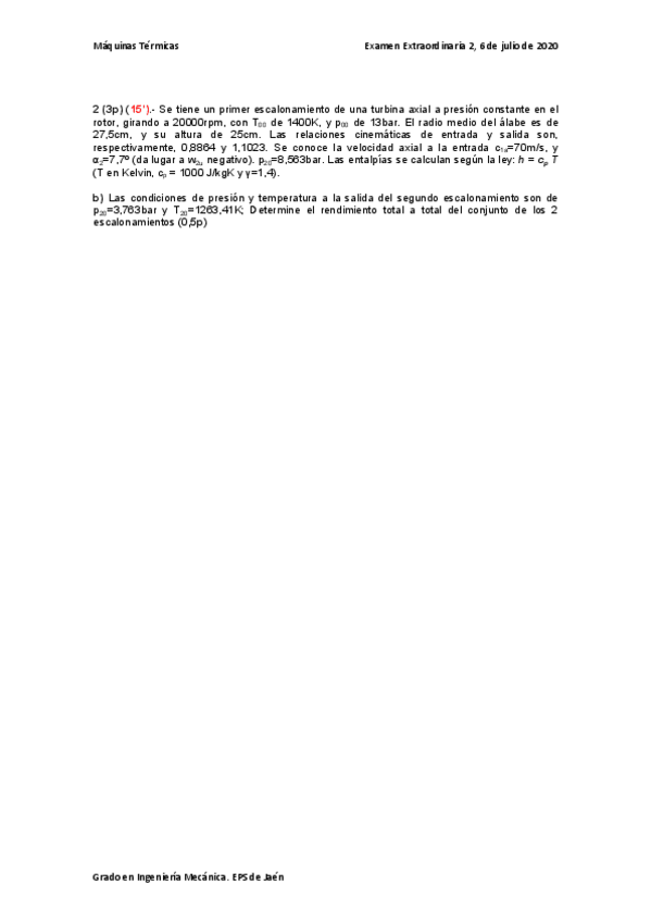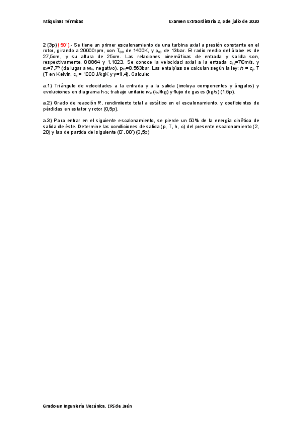 He publicado nuevos examenes de 4º Máquinas Térmicas: Examen julio 2020