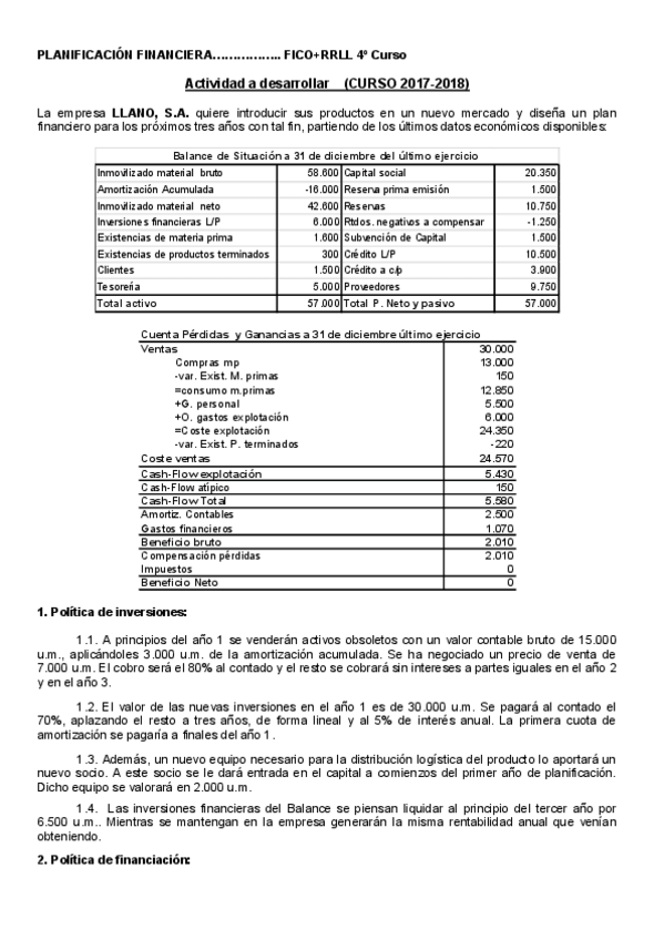 He publicado nuevos apuntes de 3º Planificación Financiera de la Empresa: CASO LLANO S.A. RESUELTO AL DETALLE EN EXCEL Y ENUNCIADO