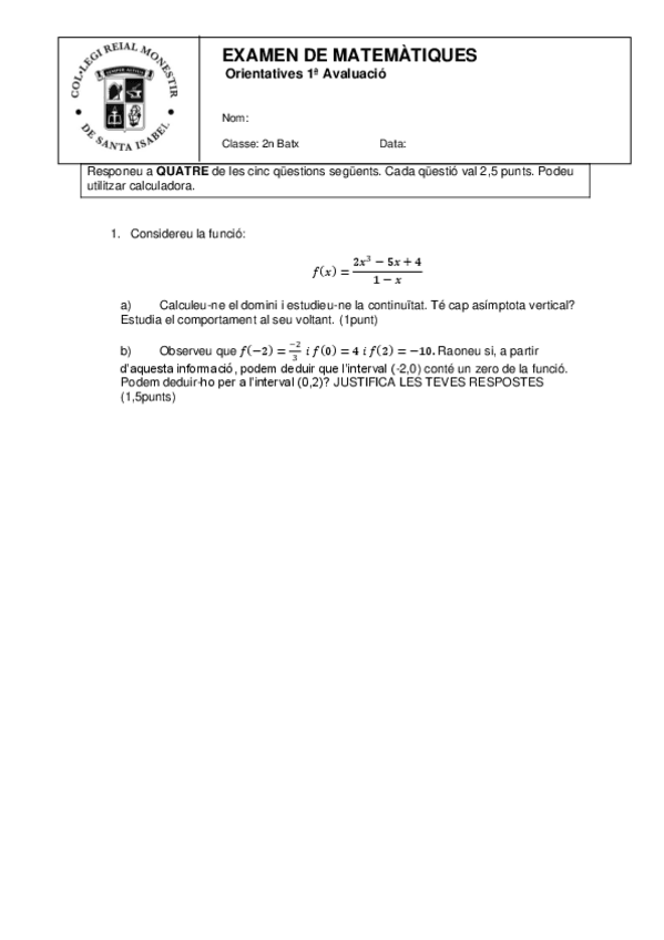 Reial Monestir de Santa Isabel - Bachillerato