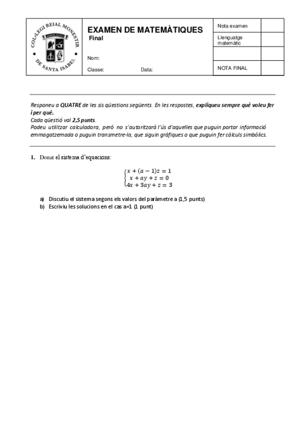 He publicado nuevos examenes de 2º Matemáticas II: Examen-final-mates-I.pdf