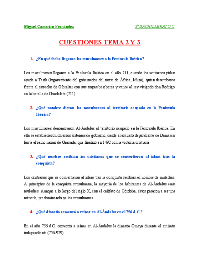 Preguntas cortas historia
