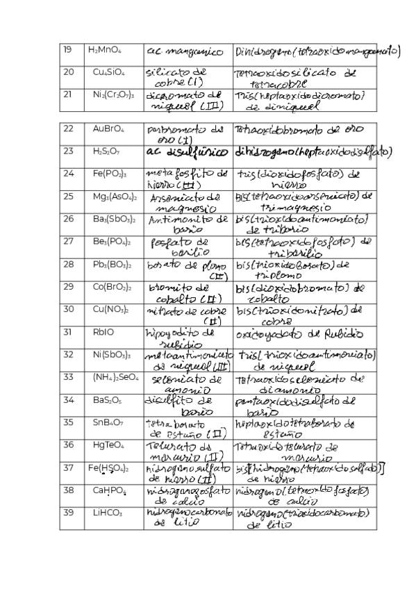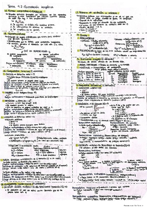 Resumen de dos caras de la formulación inorgánica para 4º de la ESO. Todo hecho a mano