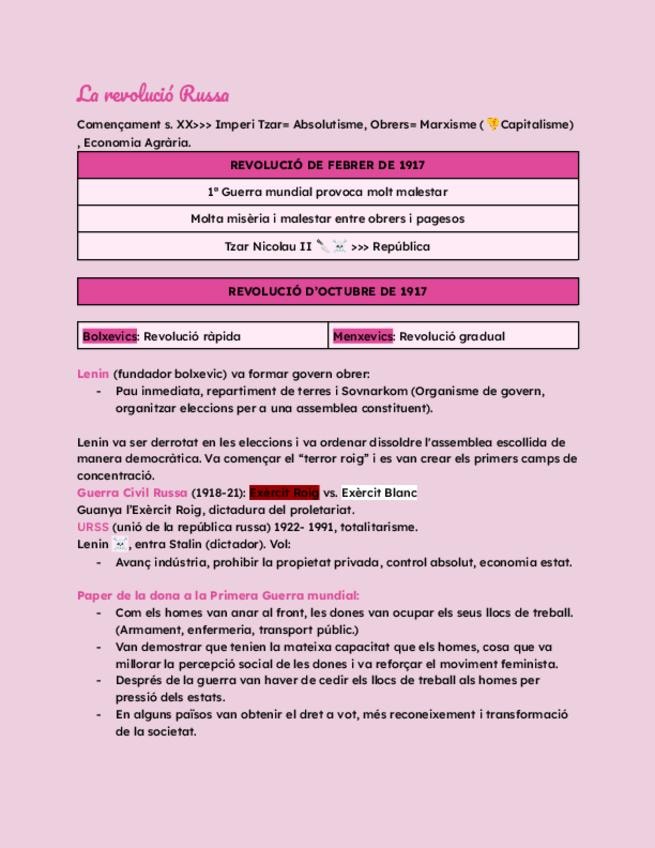 Esquema de la revolución rusa y el papel de la mujer en la primera guerra mundial