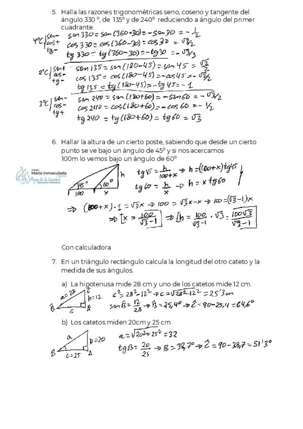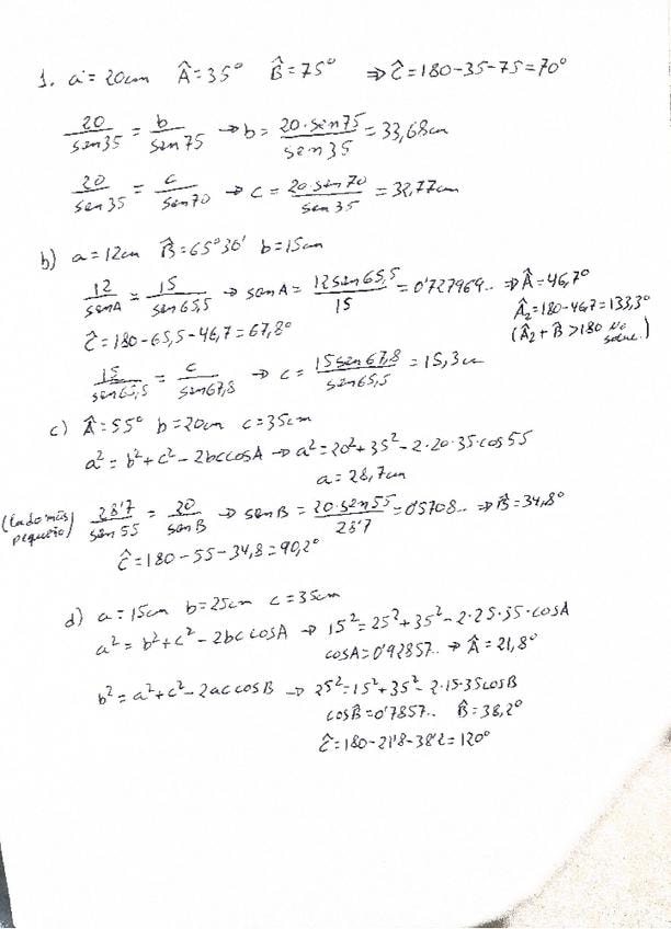Ejercicios resueltos de trigonometría 2 (teorema coseno, seno y ecuaciones trigonométricas)