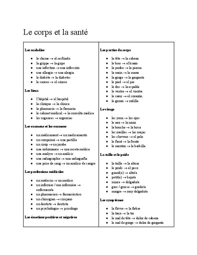 Aquí aprendes cómo nombrar las partes del cuerpo (de la cabeza a los pies), cómo describir cómo te sientes y qué decir cuando estás enfermo. También verás problemas de salud comunes y las acciones básicas para cuidarte o recuperarte. En resumen: todo lo q