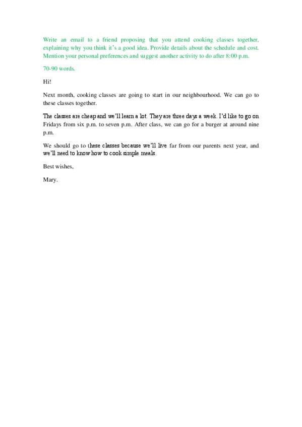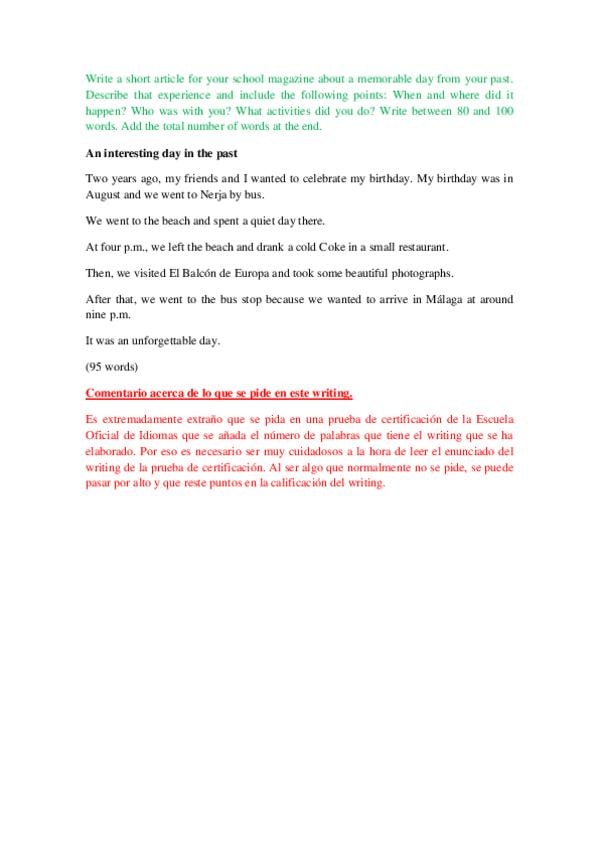Primer writing de la Prueba de Certificación de Inglés -nivel a2- de la Escuela Oficial de Idiomas de Galicia de 2020.