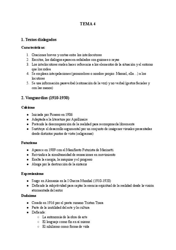 Textos dialogados, las Vanguardias y la Generación del 27 (Federico Garcia Lorca, Luis Cernuda…). Resumen del libro de Lengua Castellana y Literatura de Anaya de la Comunidad de Madrid de 4ºESO.