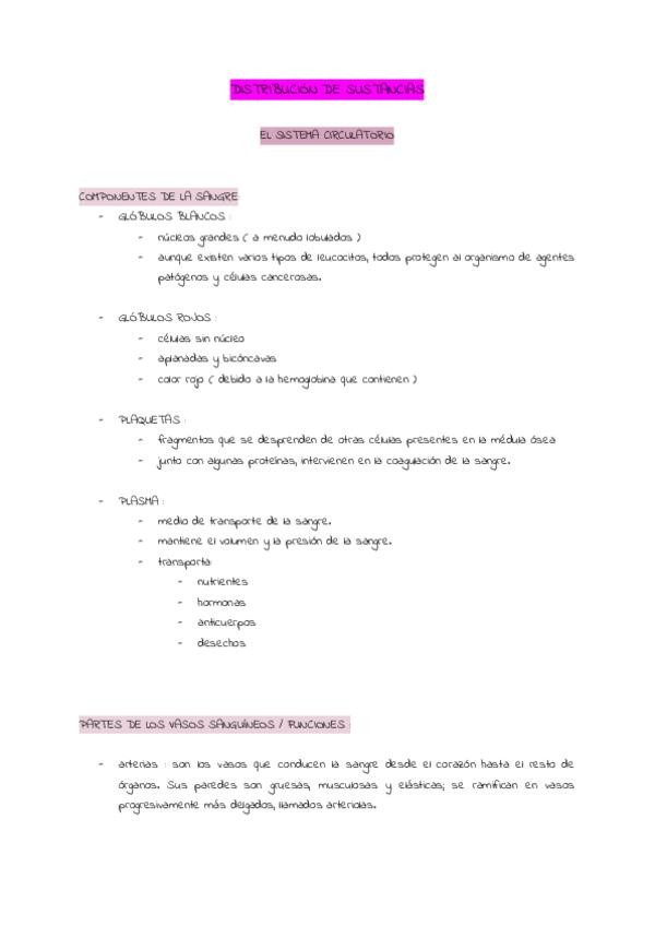 Temario sobre el aparato circulatorio detallado