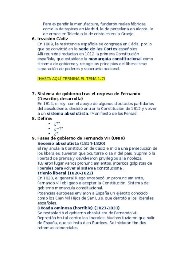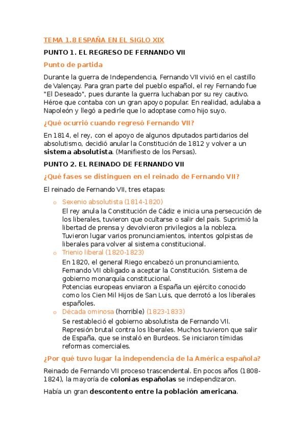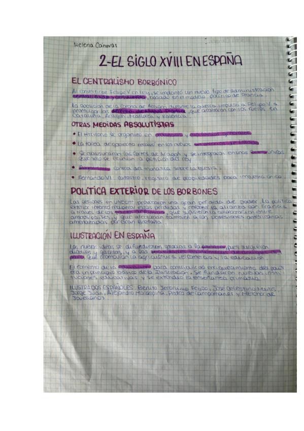 Esquemas acerca del siglo XVIII Y XIX en España. Fáciles de entender para estudiar.