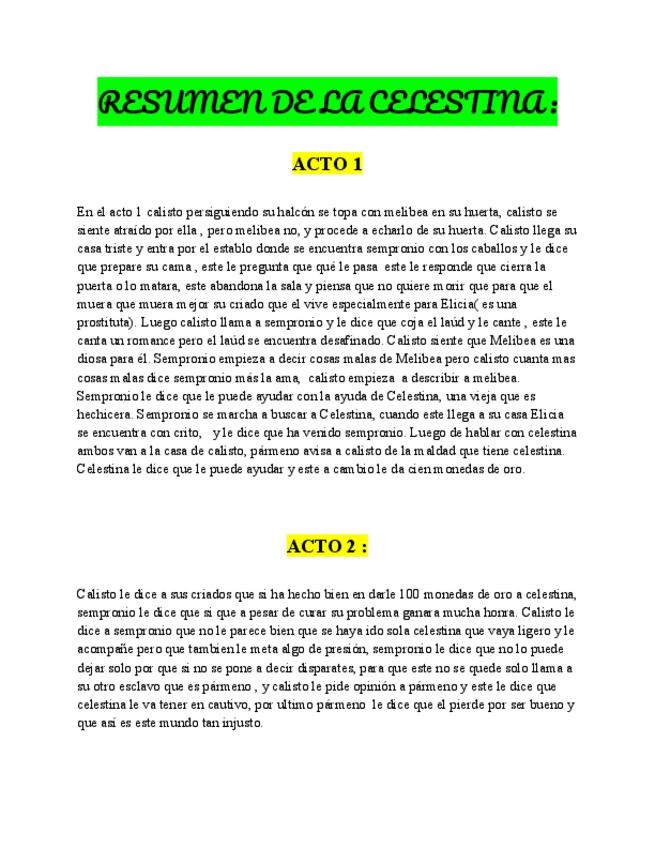 Resumen acto por acto de la celstina