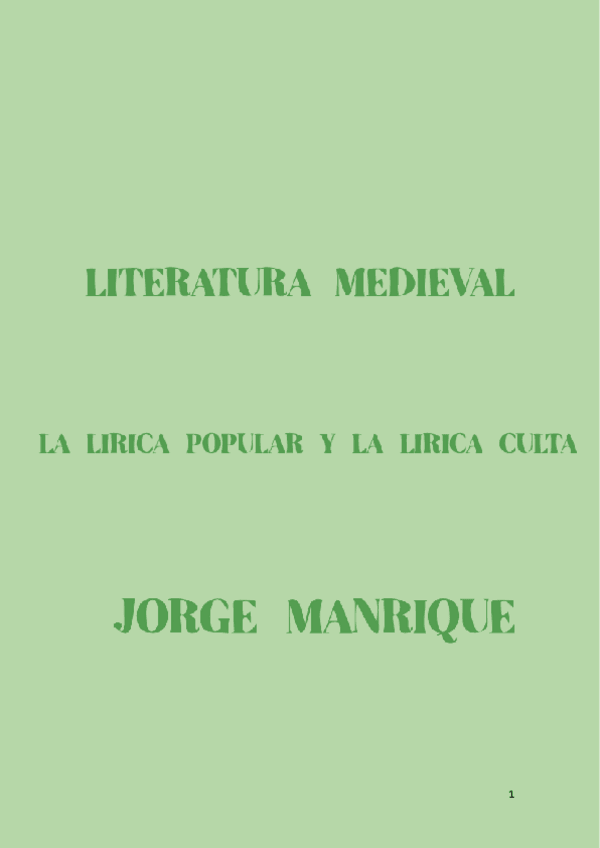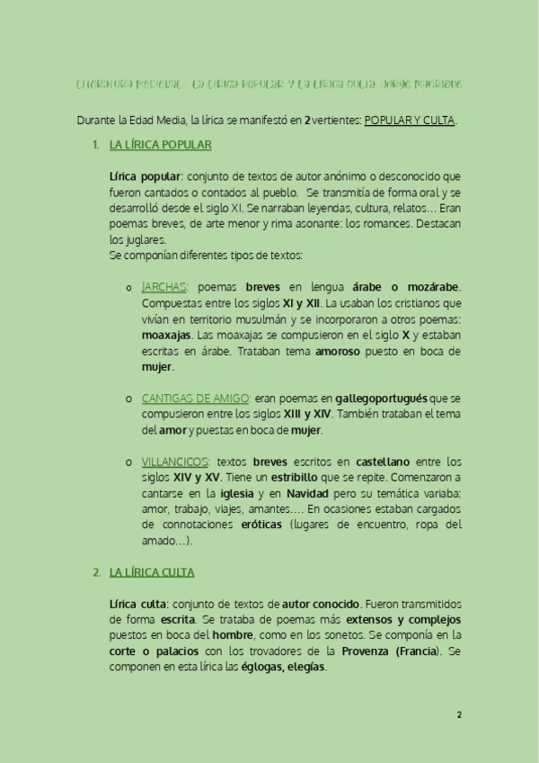 Literatura medieval/Lírica popular y culta/Jorge Manrique/Poesía cancioneril/Jarchas/Villancicos/3º ESO