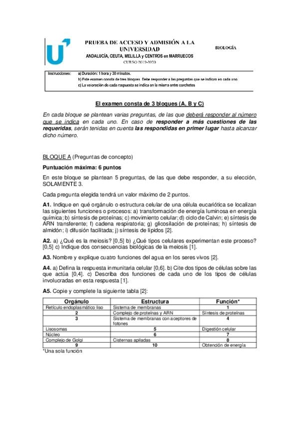 Modelos de examen Biología