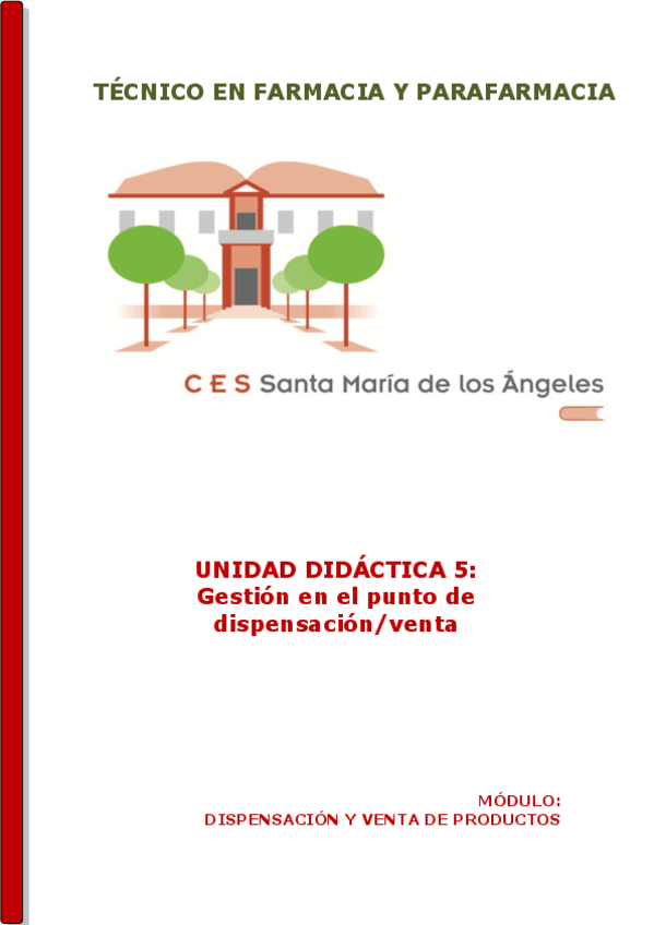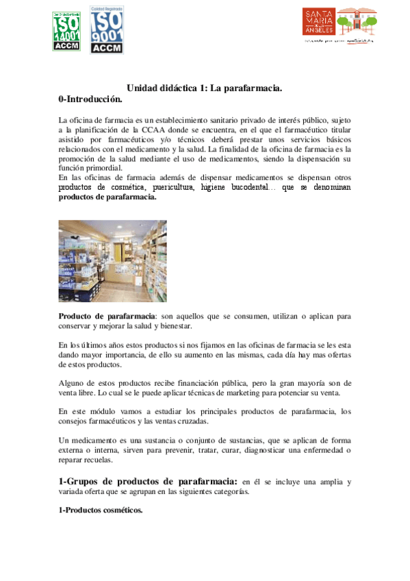 Asignaturas de Santa María de los Ángeles - Farmacia y Parafarmacia