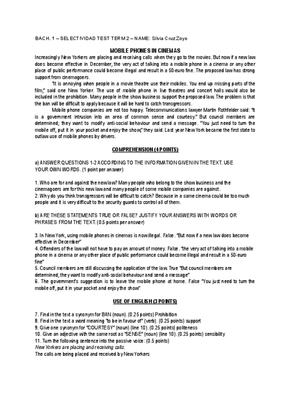 Asignaturas de Bachillerato Santa María - Collado Villalba