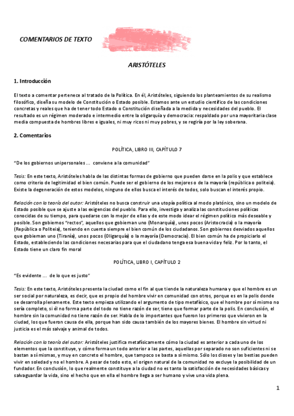 COMENTARIOS DE TEXTO - ARISTÓTELES