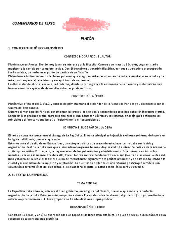 COMENTARIOS DE TEXTO - PLATÓN