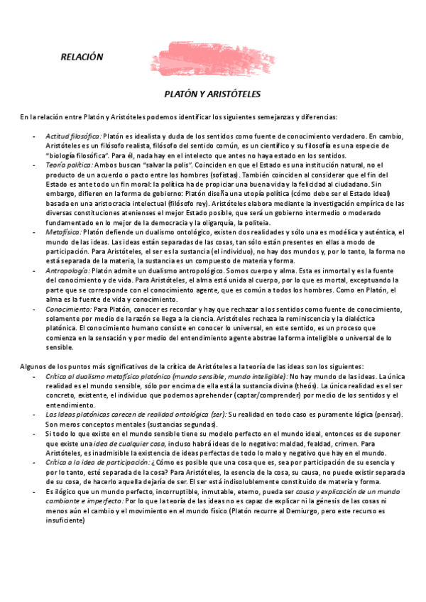 RELACIÓN PLATÓN Y ARISTÓTELES