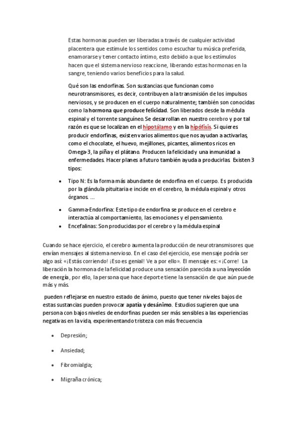 Trabajo acerca de las endorfinas. Subiré el video que está en el pdf y nota del trabajo un 10