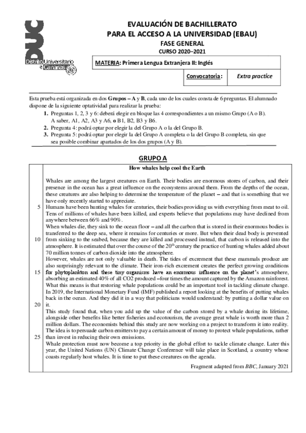 Estaré subiendo todos los exámenes EBAU de inglés de canarias.