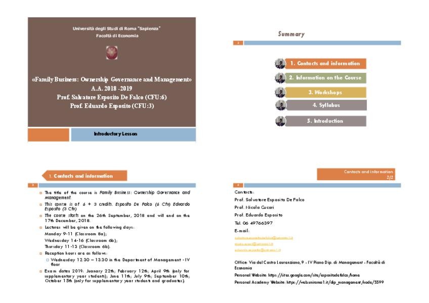 Asignaturas de Management delle imprese (La Sapienza)