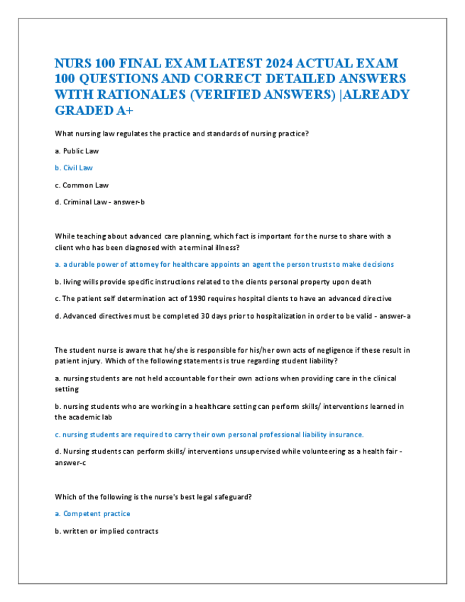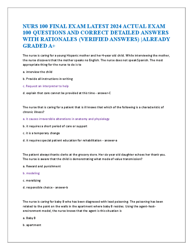 He publicado nuevos apuntes de 5º Farmacología: NURS-100-FINAL-EXAM-LATEST-2024-ACTUAL-EXAM-100-QUESTIONS-AND-CORRECT-DETAILED-ANSWERS-WITH-RATIONALES.pdf