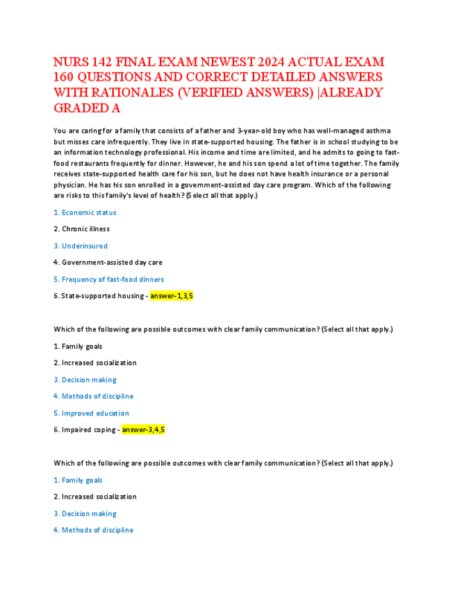 He publicado nuevos apuntes de 5º Farmacología: NURS-142-FINAL-EXAM-NEWEST-2024-ACTUAL-EXAM-160-QUESTIONS-AND-CORRECT-DETAILED-ANSWERS-WITH-RATIONALES.pdf