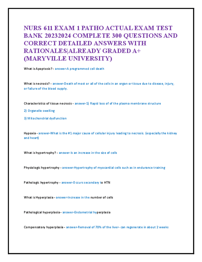He publicado nuevos apuntes de 5º Farmacología: NURS-611-EXAM-1-PATHO-ACTUAL-EXAM-TEST-BANK-20232024-COMPLETE-300-QUESTIONS-AND-CORRECT-DETAILED-ANSWERS-WITH-RATIONALES.pdf