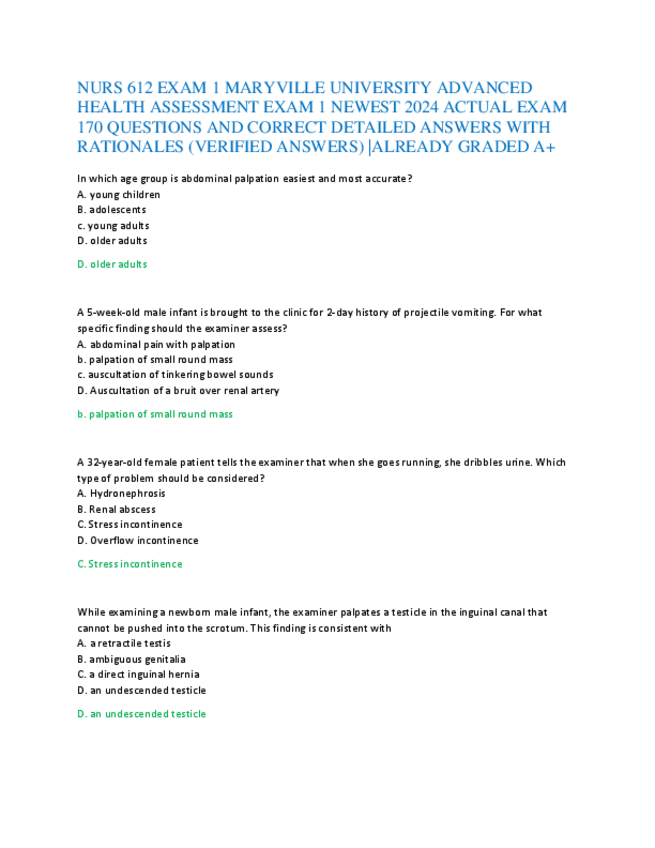 He publicado nuevos apuntes de 5º Farmacología: NURS-612-EXAM-1-MARYVILLE-UNIVERSITY-ADVANCED-HEALTH-ASSESSMENT-EXAM-1-NEWEST-2024-ACTUAL-EXAM-170-QUESTIONS-AND-CORRECT-DETAILED-ANSWERS-WITH-RATIONALES.pdf