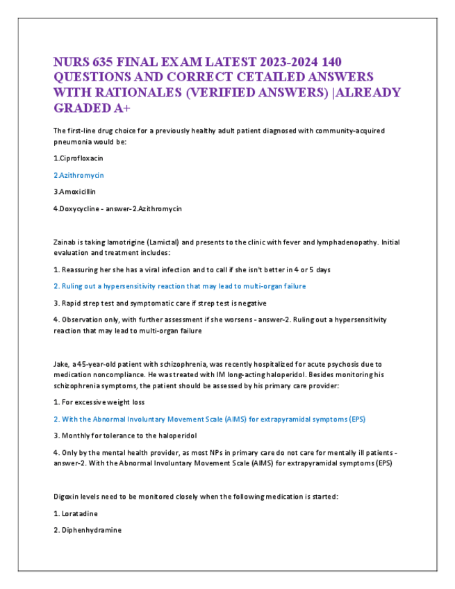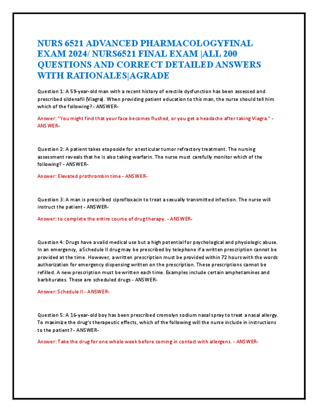 He publicado nuevos apuntes de 5º Farmacología: NURS-100-FINAL-EXAM-LATEST-2024-ACTUAL-EXAM-100-QUESTIONS-AND-CORRECT-DETAILED-ANSWERS-WITH-RATIONALES22.pdf