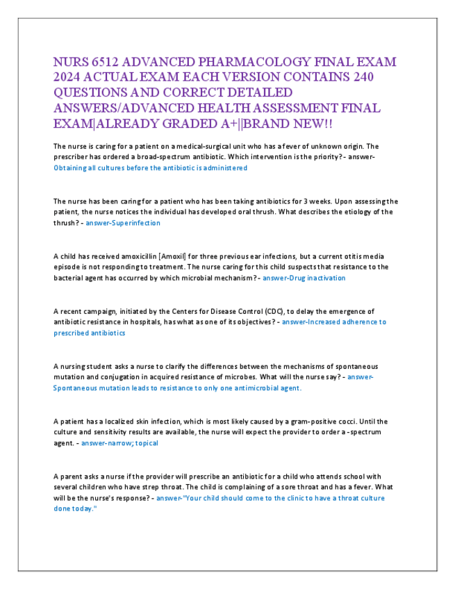 He publicado nuevos apuntes de 5º Farmacología: NURS-6512-ADVANCED-PHARMACOLOGY-FINAL-EXAM-2024-ACTUAL-EXAM-EACH-VERSION-CONTAINS-240-QUESTIONS-AND-CORRECT-DETAILED-ANSWERS.pdf
