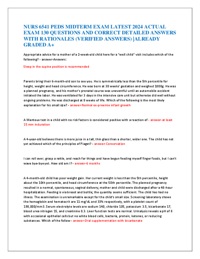 He publicado nuevos apuntes de 5º Farmacología: NURS-6541-PEDS-MIDTERM-EXAM-LATEST-2024-ACTUAL-EXAM-130-QUESTIONS-AND-CORRECT-DETAILED-ANSWERS-WITH-RATIONALES.pdf