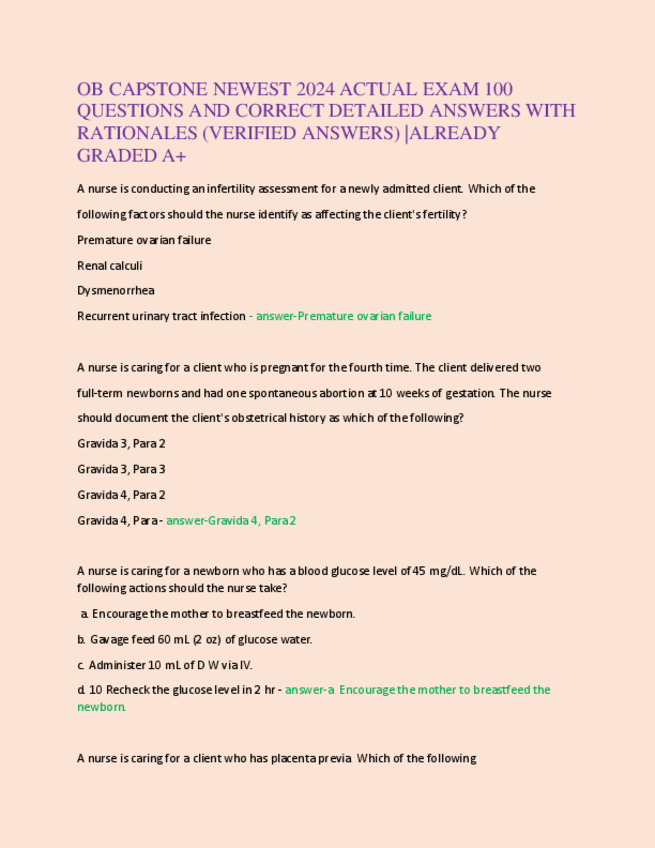 He publicado nuevos apuntes de 5º Farmacología: OB-CAPSTONE-NEWEST-2024-ACTUAL-EXAM-100-QUESTIONS-AND-CORRECT-DETAILED-ANSWERS-WITH-RATIONALES.pdf