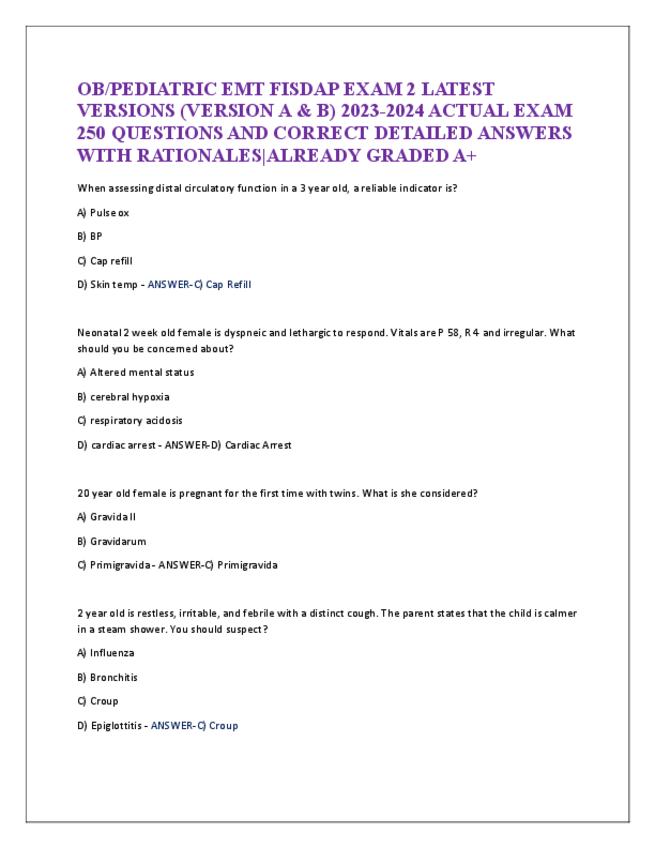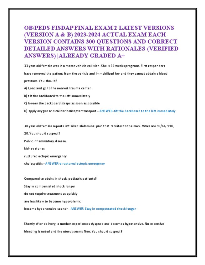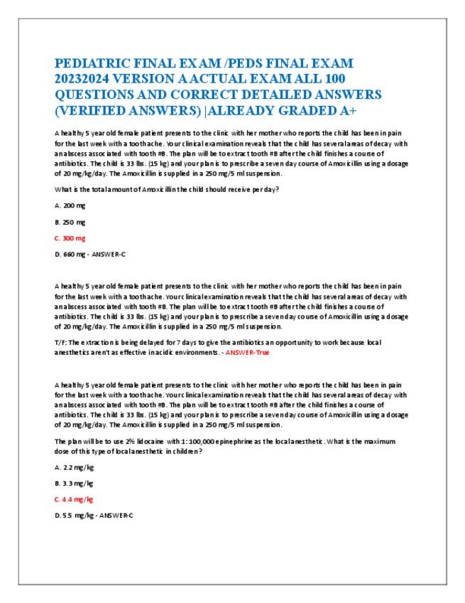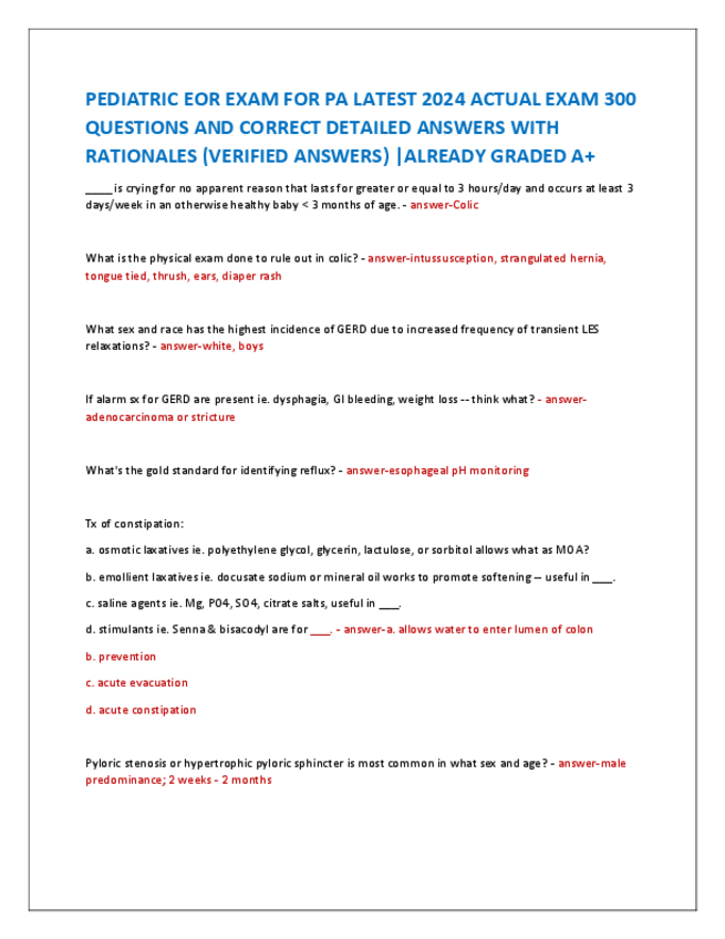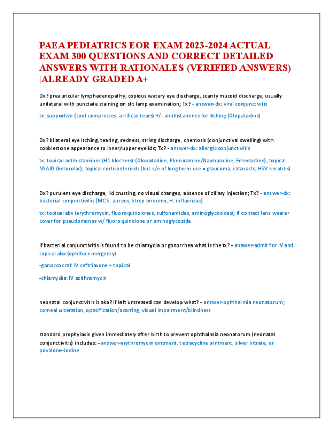 He publicado nuevos apuntes de 5º Farmacología: PEDIATRIC-EOR-EXAM-FOR-PA-LATEST-2024-ACTUAL-EXAM-300-QUESTIONS-AND-CORRECT-DETAILED-ANSWERS-WITH-RATIONALES.pdf