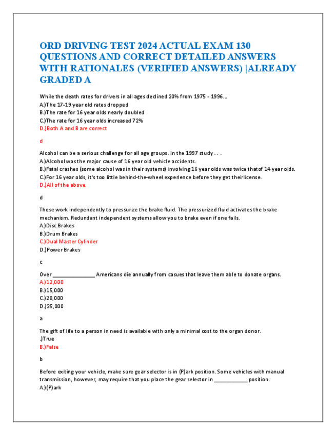 He publicado nuevos apuntes de 5º Farmacología: ORD-DRIVING-TEST-2024-ACTUAL-EXAM-130-QUESTIONS-AND-CORRECT-DETAILED-ANSWERS-WITH-RATIONALES.pdf