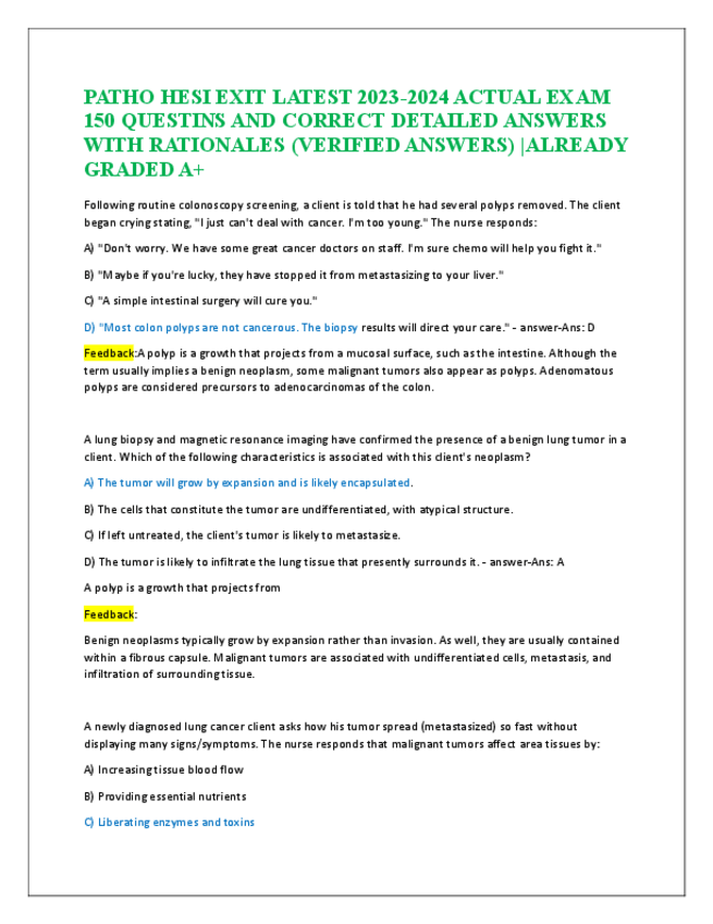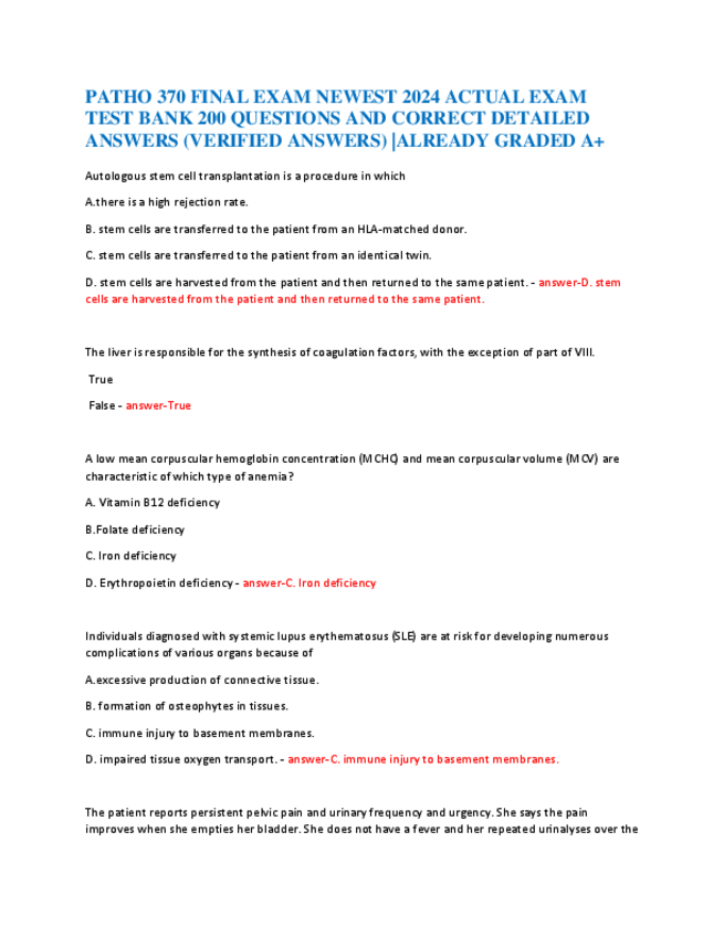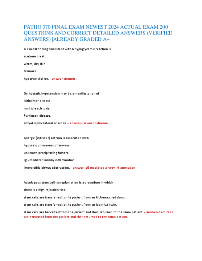 He publicado nuevos apuntes de 5º Farmacología: PATHO-370-FINAL-EXAM-NEWEST-2024-ACTUAL-EXAM-200-QUESTIONS-AND-CORRECT-DETAILED-ANSWERS.pdf