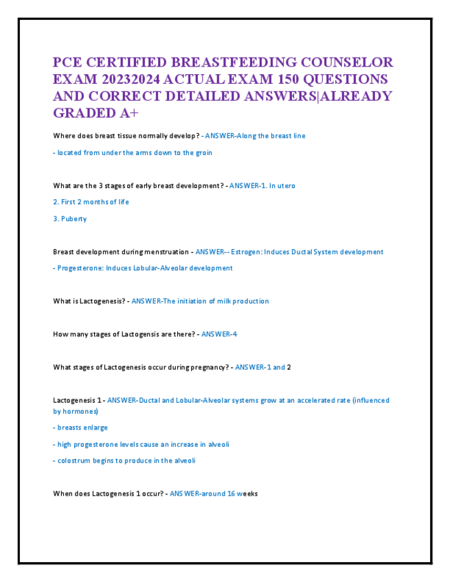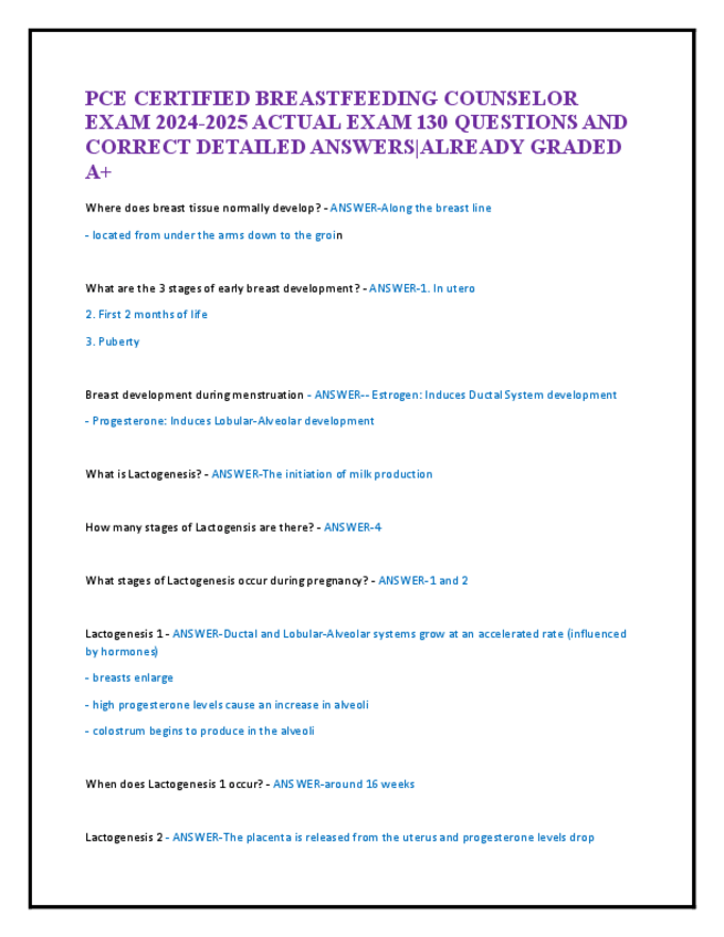 He publicado nuevos apuntes de 5º Farmacología: PCE-CERTIFIED-BREASTFEEDING-COUNSELOR-EXAM-20232024-ACTUAL-EXAM-150-QUESTIONS-AND-CORRECT-DETAILED-ANSWERS.pdf