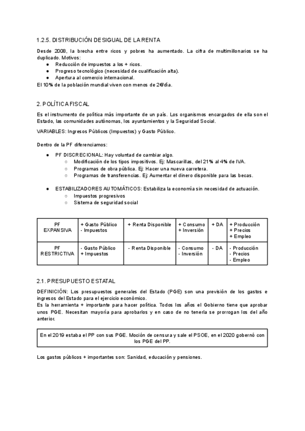Intervención del Estado en la economía - Desequilibrios actuales y retos futuros de la economía