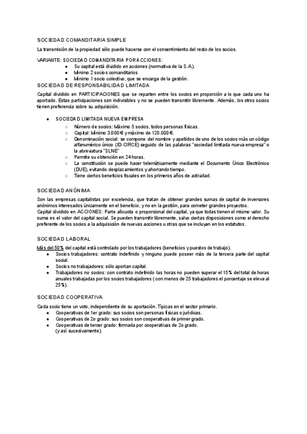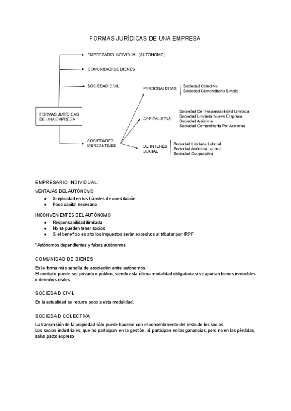 Tablas y características de las distintas formas jurídicas de las empresas.