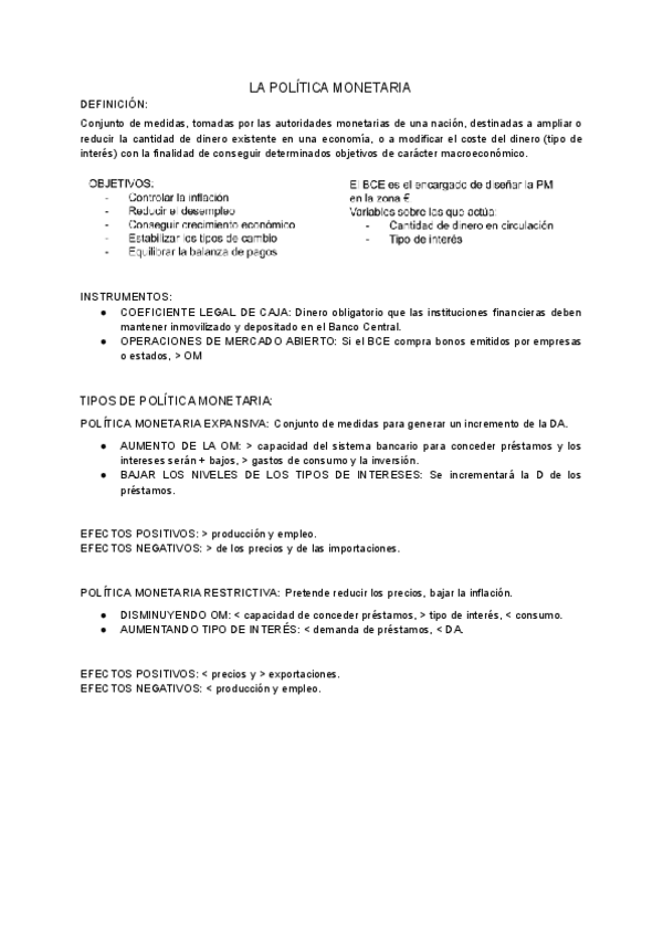 El sistema financiero y la política monetaria - La economía internacional