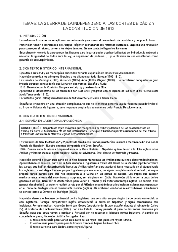 LA GUERRA DE LA INDEPENDENCIA, LAS CORTES DE CÁDIZ Y LA CONSTITUCIÓN DE 1812