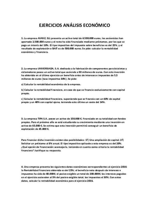EJERCICIOS DE ANÁLISIS ECONÓMICO