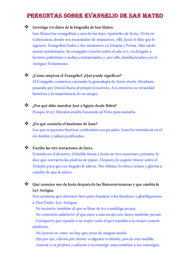 Preguntas Evangelio de San Mateo