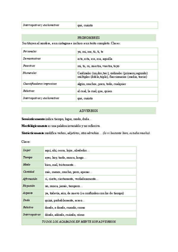 Apuntes completos con ejemplos. Tema 5 Lengua española - Adverbios, preposiciones y conjunciones