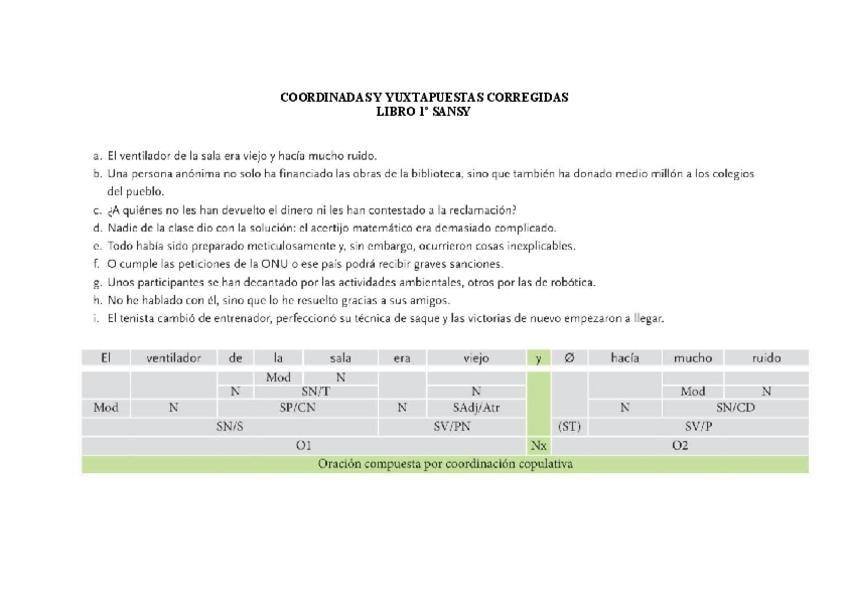 ACTIVIDADES SINTAXIS (coordinadas y yuxtapuestas) y su corrección