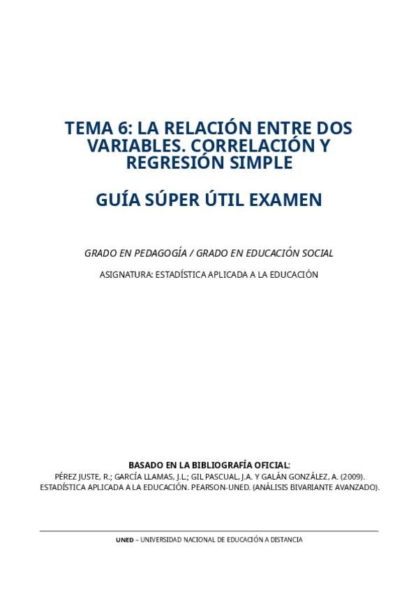 He publicado nuevos apuntes de 1º Estadística Aplicada a la Educación: TEMA-6-CORRELACION-Y-REGRESION-SIMPLE-GUIA-SUPER-UTIL-EXAMEN.pdf