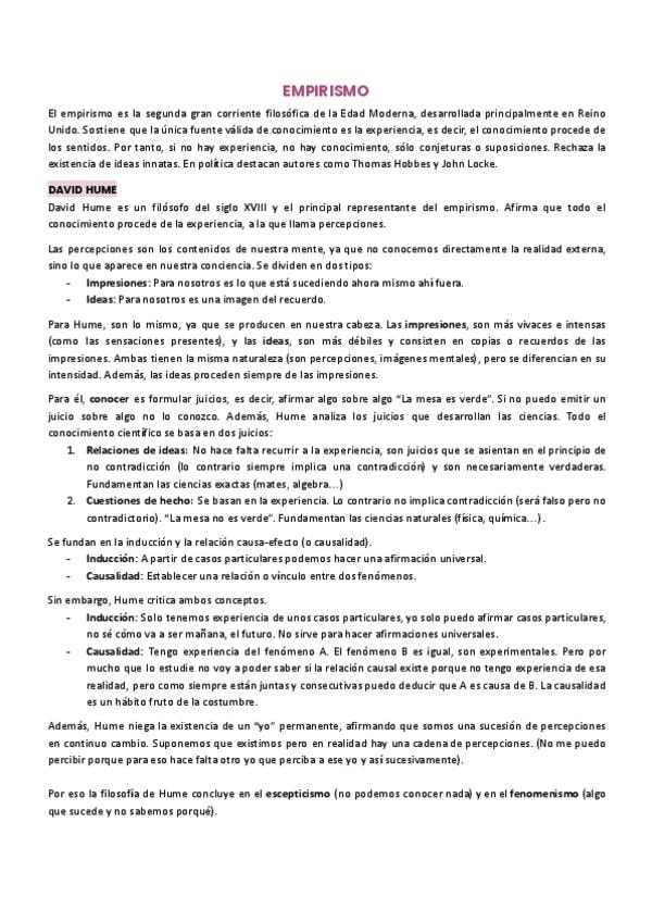 Apuntes sobre el empirismo segundo de bachillerato y PAU. Incluye a David Hume, Thomas Hobbes y John Locke