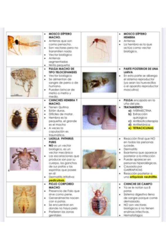 Este documento es un compendio técnico de parasitología enfocado en la morfología, patogenia y tratamiento de artrópodos de interés médico. Detalla características de vectores biológicos y mecánicos como dípteros, pulgas, piojos, chinches y garrapatas. In