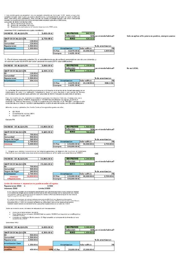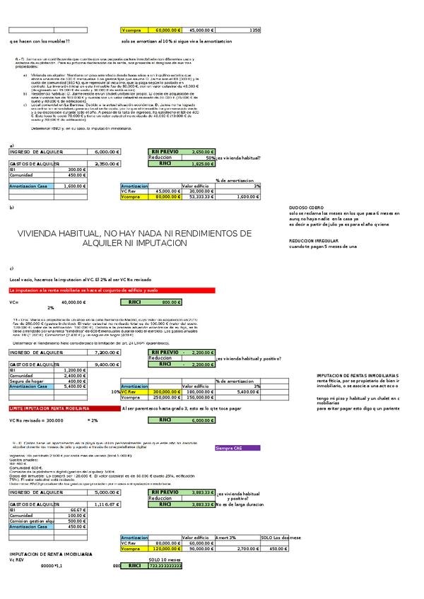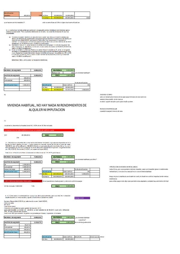 Practica del Tema 3 IRPF (RENDIMIENTOS DEL CAPITAL INMOBILIARIO E IMPUTACIONES INMOBILIARIAS). Todas las formulas utilizadas estan en las celdas del excel.